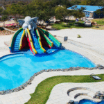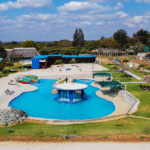 Enjoy swimming in our large pool, glide down exciting water slides, or let the kids explore the inflatable play area. Lounge under thatched umbrellas, share a picnic, or take in the view from the water’s edge.